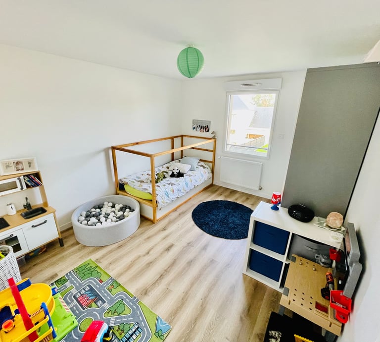 Cette remarquable bâtisse contemporaine et familiale propose 129 m² environ de luminosité grâce à ses grandes baies traversantes. Édifiée sur une parcelle de 700 m² environ est agréablement paysagée, l’authenticité de son environnement lui offrent des avantages indéniables. L’entrée ouvre sur un bel espace de vie lumineux de 47 m² environ dont une cuisine très fonctionnelle de 11 m² environ dotée d'équipements hauts de gamme, suivi par une buanderie avec accès au garage ainsi qu'un toilette indépendant. S'ajoute à cela une chambre parentale de 14 m² environ accompagnée de sa salle de douches. L'escalier nous accompagne vers l'espace nuit et ces trois chambres de 13 m² environ dont deux accompagnées de dressings. S'ajoute à cela une salle de douches et un toilette. La bâtisse dispose d'un jardin parsemé de verdure permettant de profiter de toutes les orientations du soleil. Ce bien est complété d'un garage de 18m² environ et d'un espace de stationnement privé. RT 2012, faible en consommation d'énergie grâce a une pompe à chaleur, un plancher chauffant, des radiateurs et une production d'eau chaude. Adoucisseur d'eau et un système de vidéo surveillance.